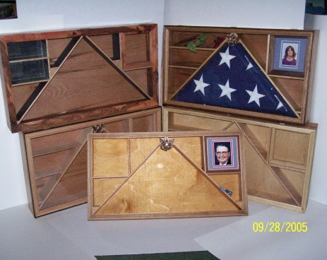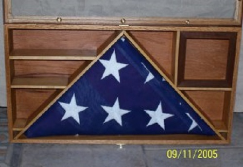 These display cases are made to hold the standard size american flag along with a picture, Medals and/or other momentos.